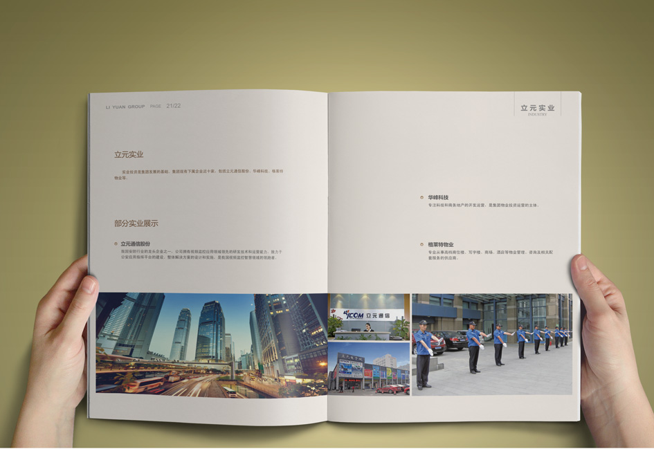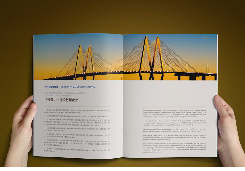 立元集團創建于1998年,旗下擁有20多家控股企業,參股近百家上市、擬上市企業,近千名員工,業務涵蓋各類金融投資、房地產開發、電子通信三大板塊。銘陽廣告公司先后為其提供集團宣傳冊設計、團隊攝影、資本投資畫冊設計、員工手冊設計制作、物業公司宣傳設計、大型主題會議設計、PPT設計等。